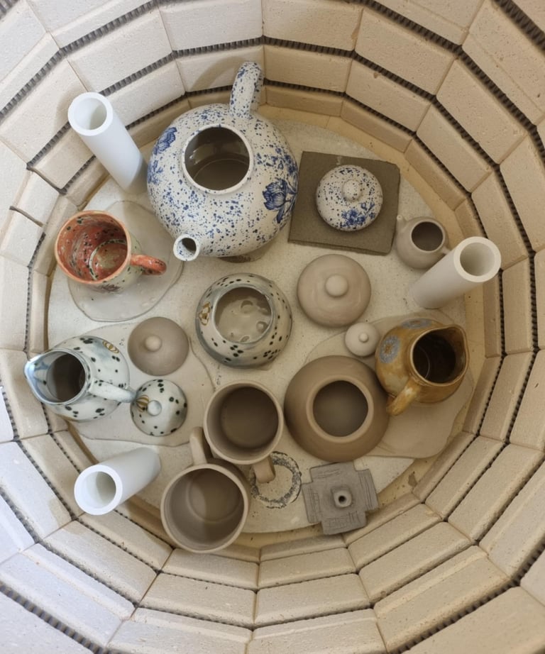 We started by getting our dream kiln. We call her Medusa because she turns things into stone.